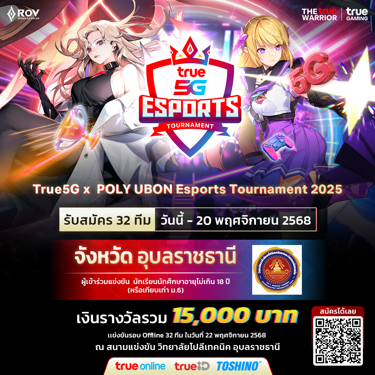 #True5GEsportsTournament #True5G #TrueID #TrueOnline #True #BetterTogether #EsportsTournament2025 #TrueGaming #เทพที่แท้ทรู #TOSHINO #TheTrueWarrior #RoV #TrueUbon #ทรูอุบลราชธานี #POLYUBON #วิทยาลัยอาชีวศึกษาโปลีเทคนิคภาคตะวันออกเฉียงเหนือ #อุบลราชธานี